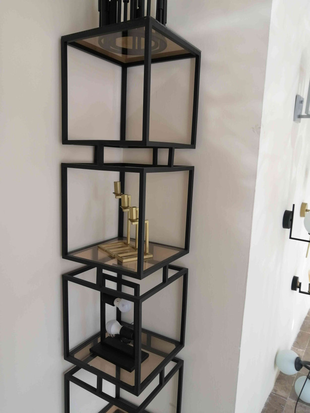 طراحی,مینیمال، هندسی و مشبک (Cage Design)، سبک صنعتی شیک.جنس بدنه,فلز مرغوب با پوشش رنگ مشکی الکترواستاتیک (مات و بادوامایدهآل برای,کنار تخت خواب، میز کار، کنسول ورودی و قفسههای دکوراتیو.).