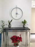 ین ساعت دیواری فلزی با طراحی منحصر به فرد و مینیمالیستی خود، فراتر از یک وسیله برای نمایش زمان است؛ اثری هنری است که به دیوار شما جلوهای خاص میبخشد. ساختار دایرهای دوبل به همراه خطوط متقاطع ظریف، عمق و شخصیت بصری دلنشینی ایجاد میکند.