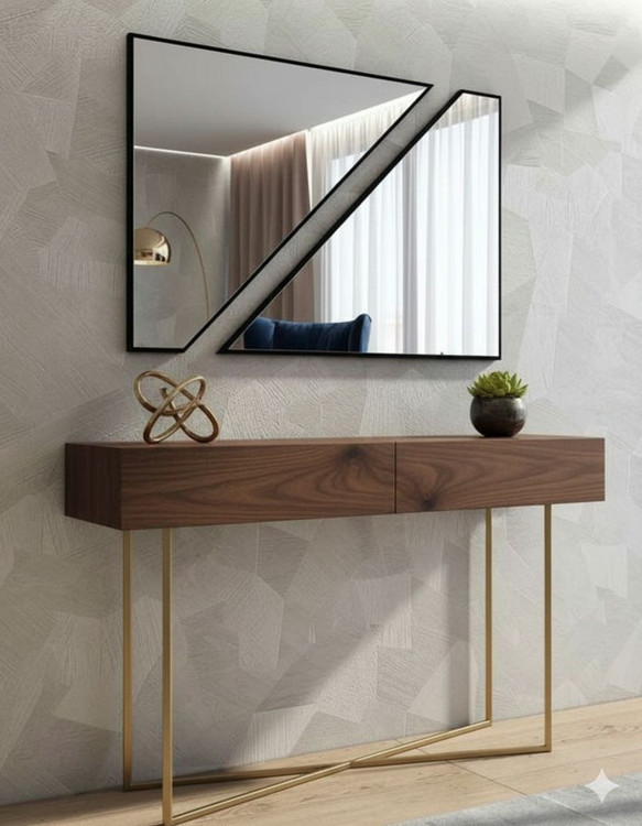آینههای معمولی کافی نیستند! این آینه دکوراتیو با فریم طلایی شیک و هندسی، طراحی شده تا به دیوار شما عمق، درخشش و شخصیت ببخشد. از این آیتم خاص در ورودی خانه، بالای کنسول یا در اتاق خواب استفاده کنید تا نور را منعکس کند و فضای شما را بزرگتر و روشنتر از همیشه نشان دهد. یک انتخاب شیک برای کسانی که میدانند جزئیات، تفاوت میسازد
