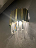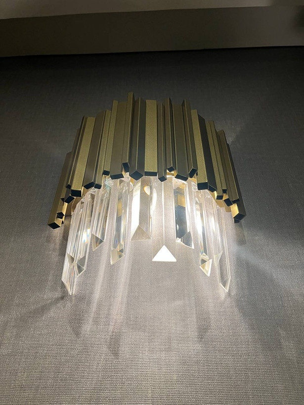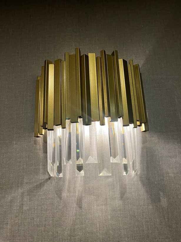 این محصول، یک اثر هنری خیرهکننده است که با طراحی ستونی و طبقات پلکانی، جلوهای از شکوه آرت دکو را به فضای شما میآورد. میلههای فلزی با پوشش طلایی/برنجی، بافتی گرم و مدرن ایجاد میکنند، در حالی که لایههای زیرین از منشورهای کریستالی تشکیل شدهاند تا نور را به صورت دراماتیک منعکس کنند.این دیوارکوب/آویز برای فضاهایی که نیاز به تأکید بر ارتفاع و لوکس بودن دارند، بینظیر است. کافی است آن را در کنار یک آینه بزرگ نصب کنید تا یک نورپردازی فوقالعاده مجلل ایجاد ک