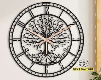 ساعت دیواری مدرن فلزی و تلفیق چوب کد H151